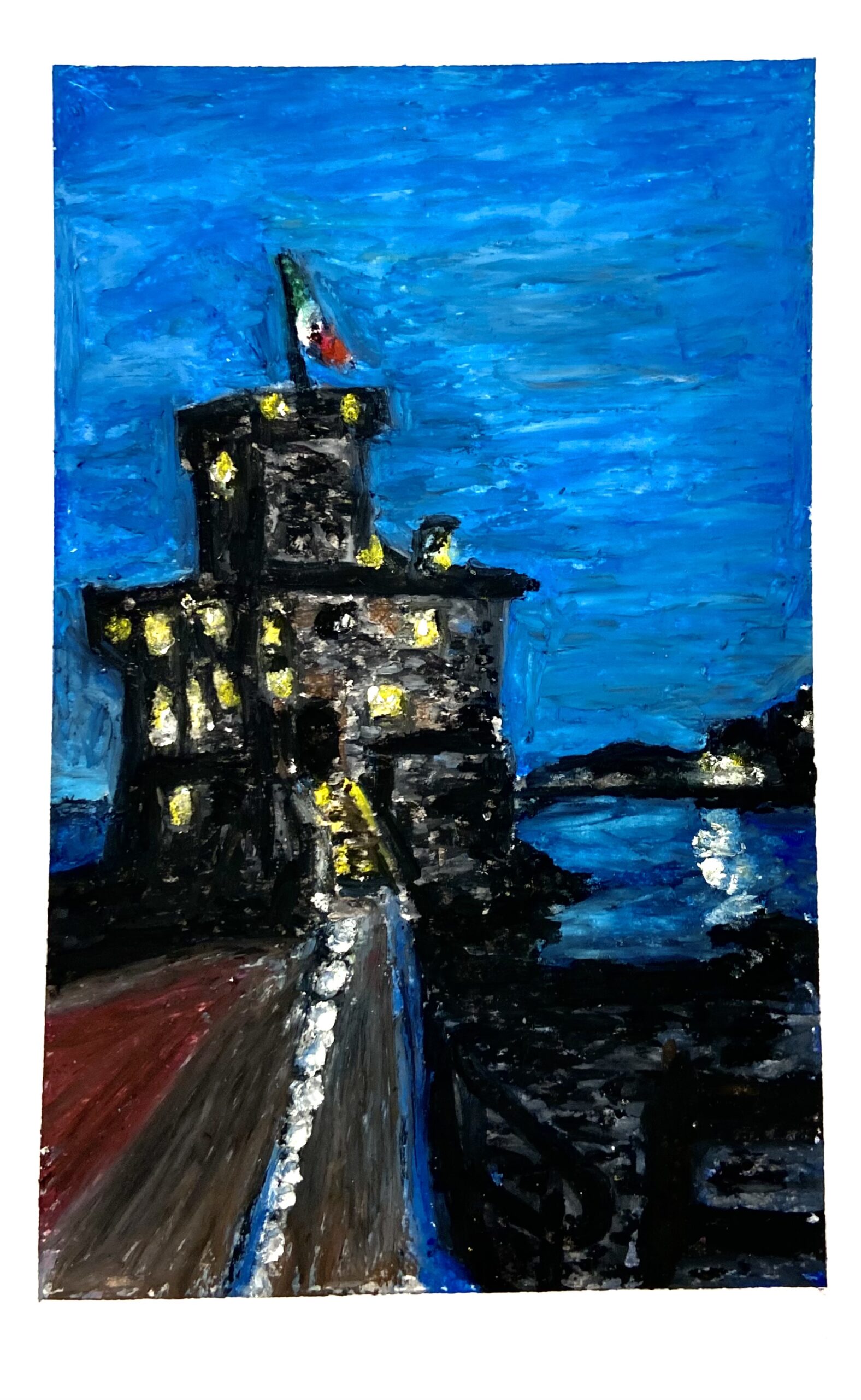Print of Italian coastline done in oil pastel